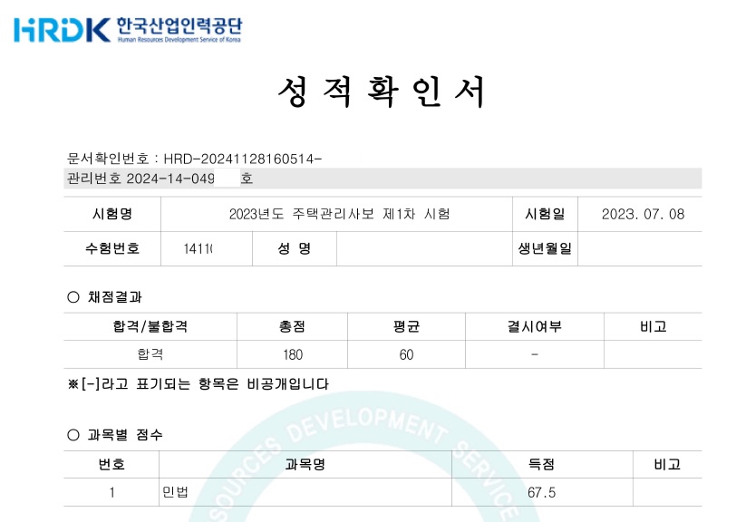● 민법 : 계속 문제만 풀었습니다. 그동안 MP3 강의를 많이 들었기 때문에 문제를 풀면 60점 정도는 나왔습니다. MP3에는 문제풀이 강의도 있었기 때문에, 2년 동안 MP3 강의를 듣고 다닌것이 효과가 있었다고 생각합니다. 주택관리사보 자격 취득 후, 곧바로 관리소장 취업이 목표가 아니라면 이렇게 하는 것도 괞찮을 것 같습니다.