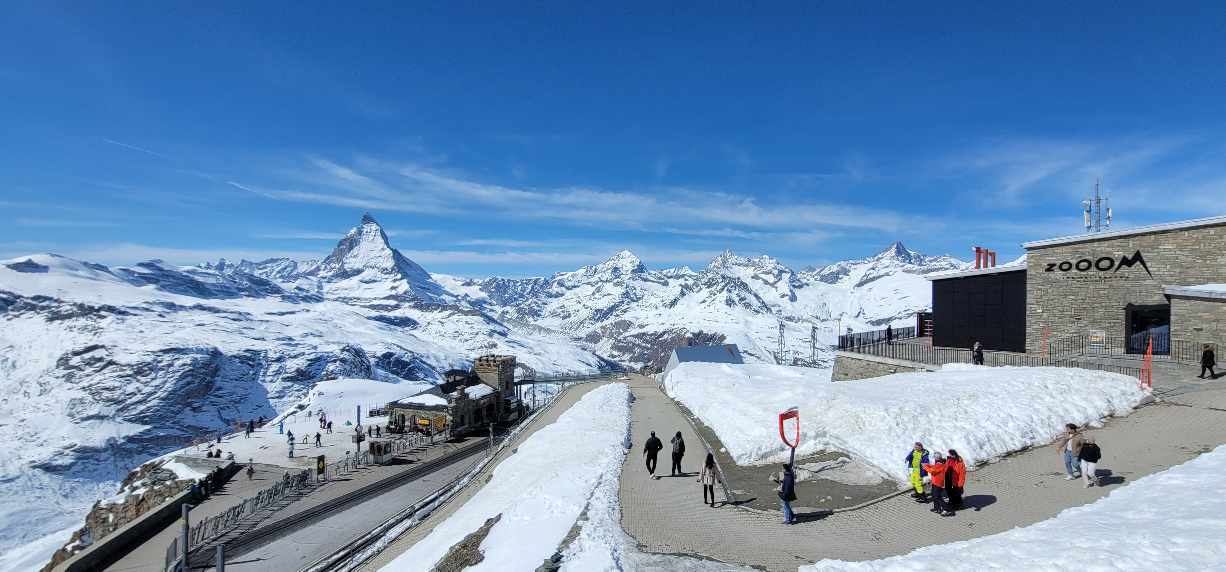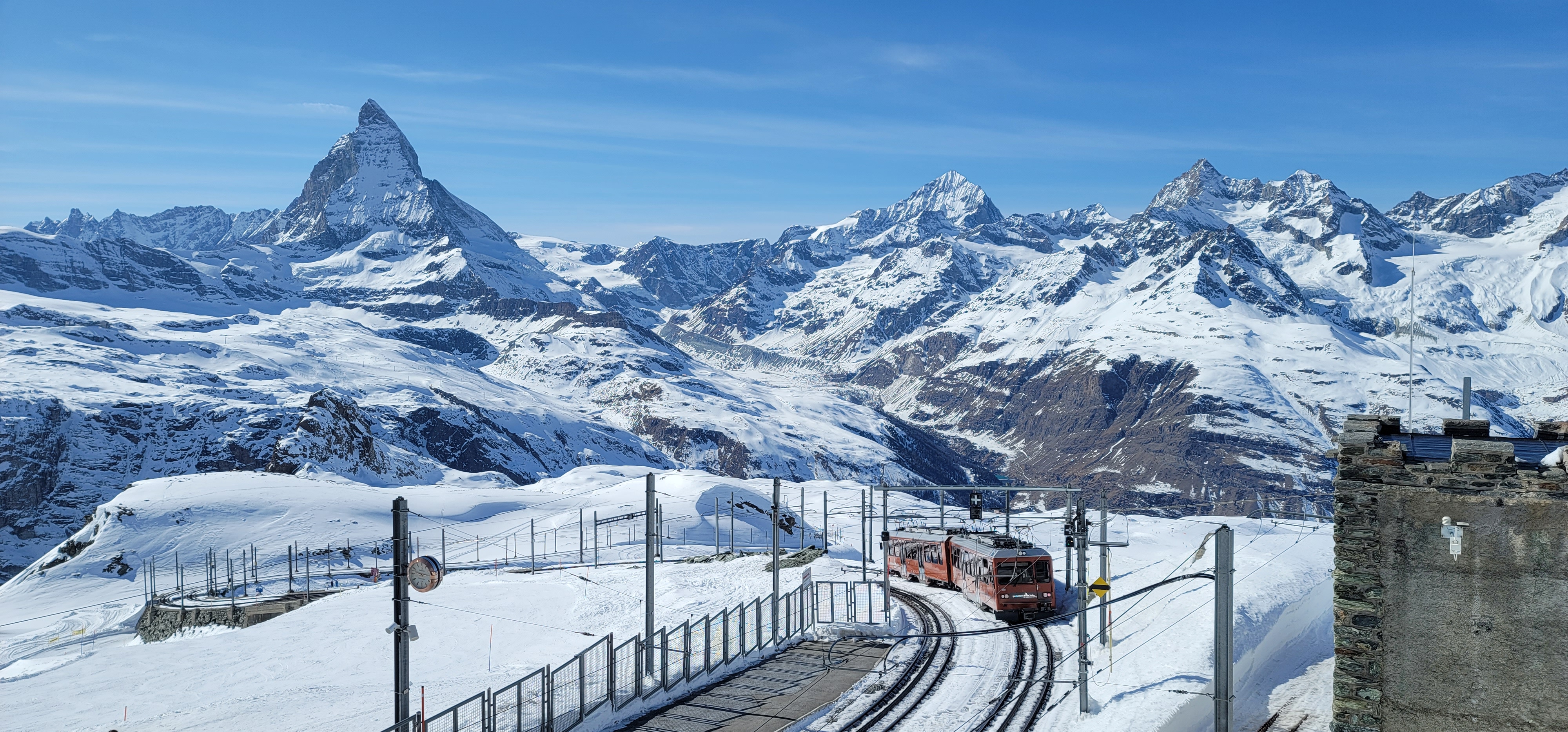 체르마트에서 기차를 다시 갈아타고 고르너그라트역으로 향합니다. 기차가 시내를 벗어나자 바로 마테호른이 차장 밖으로 보입니다.