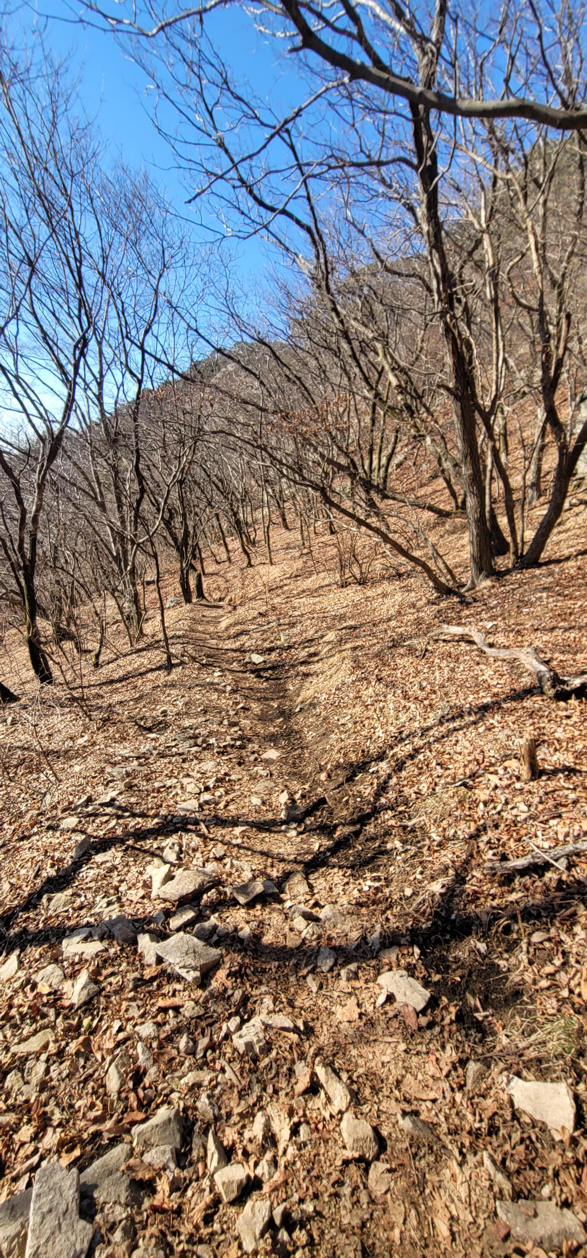 - 삼불봉고개 → 삼불봉 : 오르막 경사도가 조금 높고, 삼불봉 오르기 직전 계단은 경사도가 45도 이상으로 생각됨