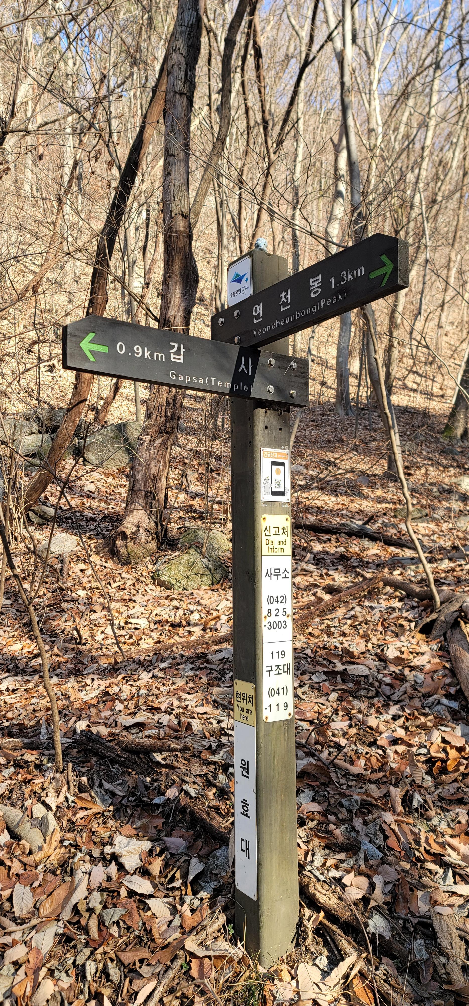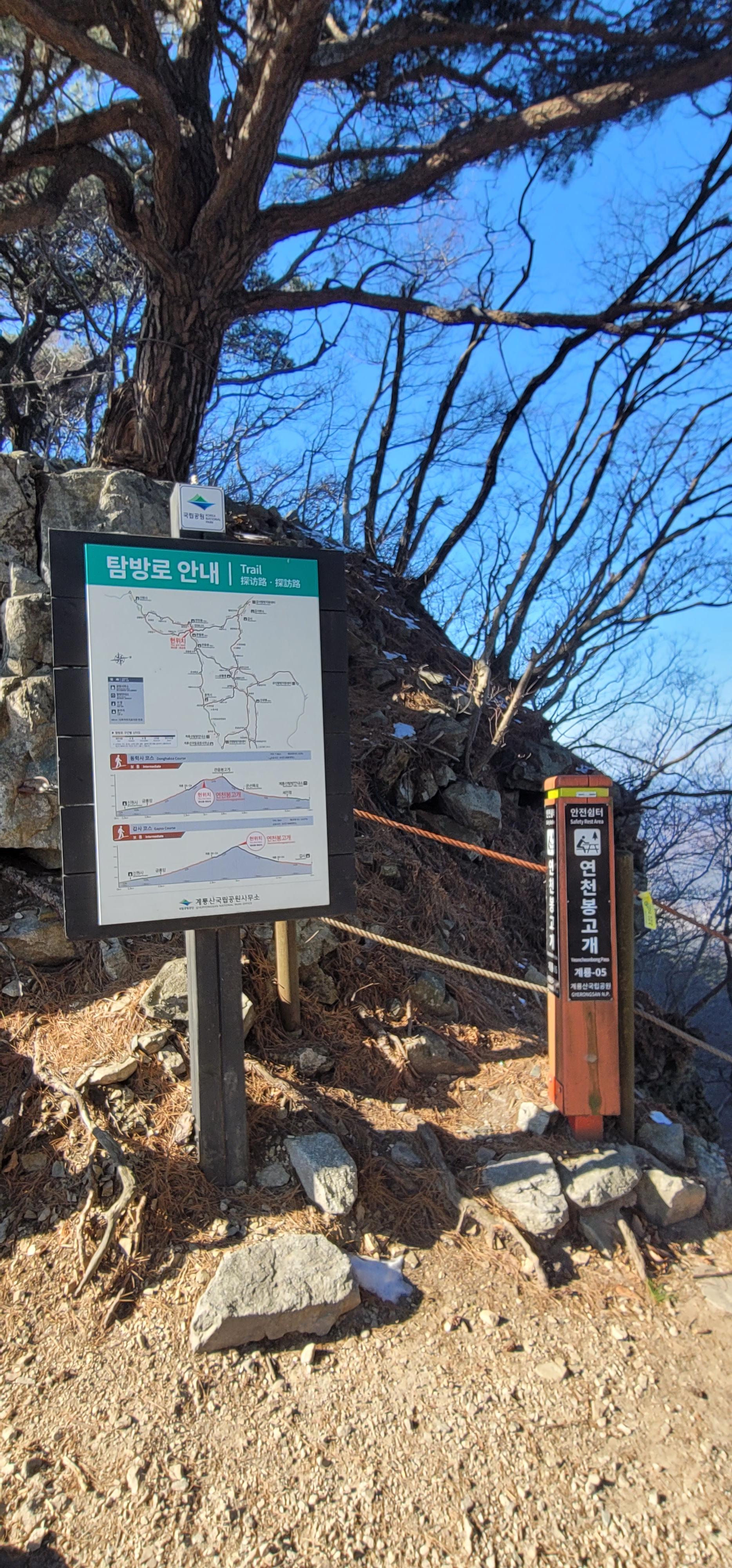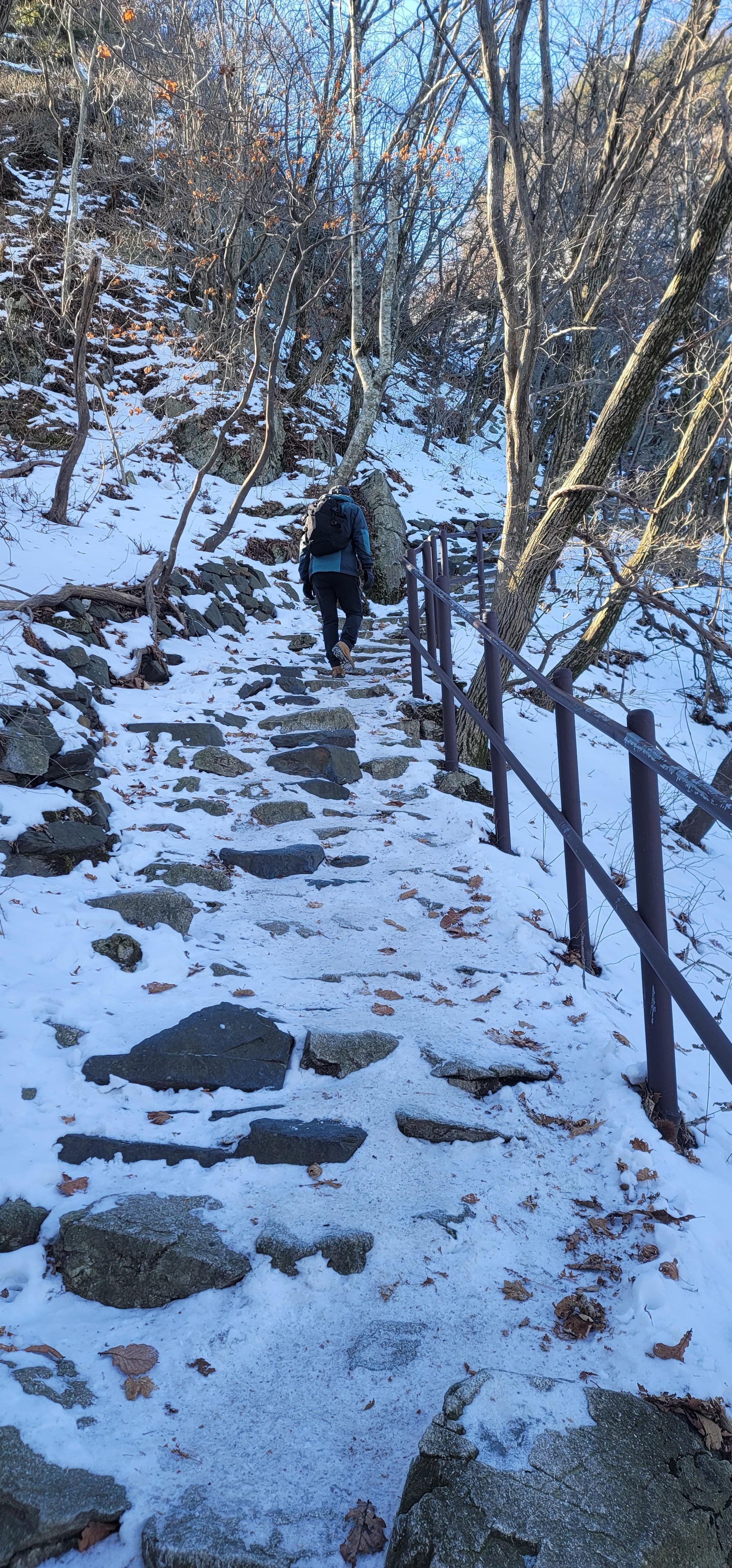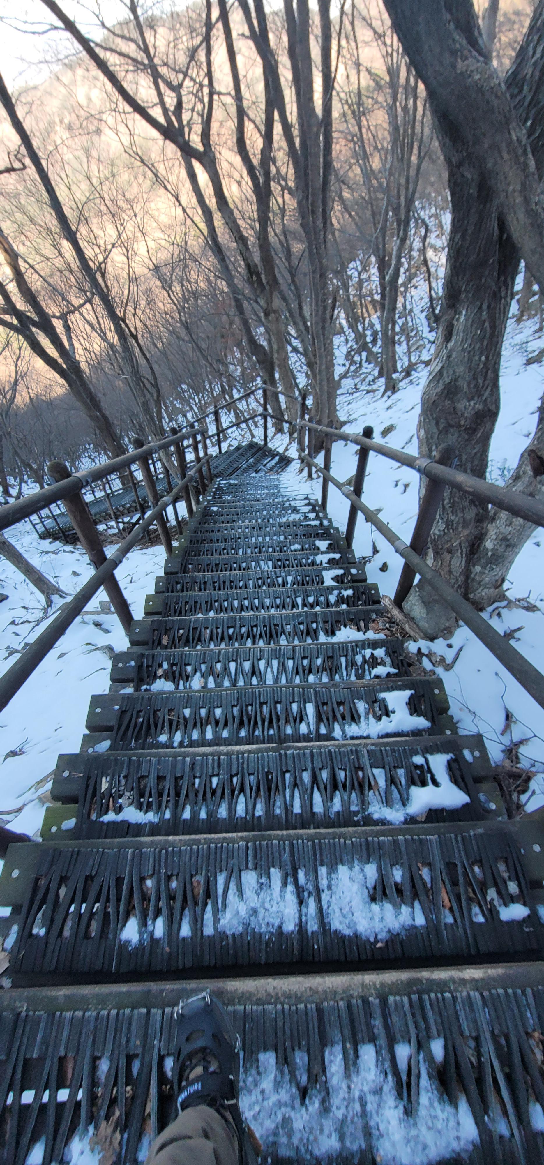 - 연천봉고개 - 갑사 : 연천봉고개에서 갑사 1km 남긴 지점까지는 아주 급경사 돌계단에 얼음도 같이 있어서 상당히 힘든 코스. 아이젠 착용 필수