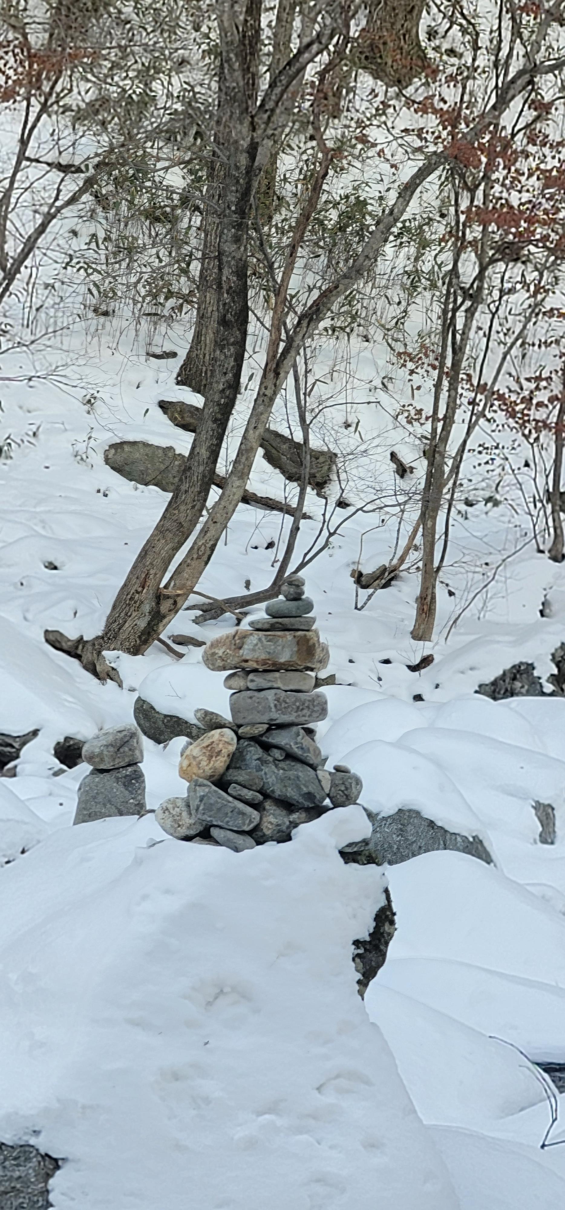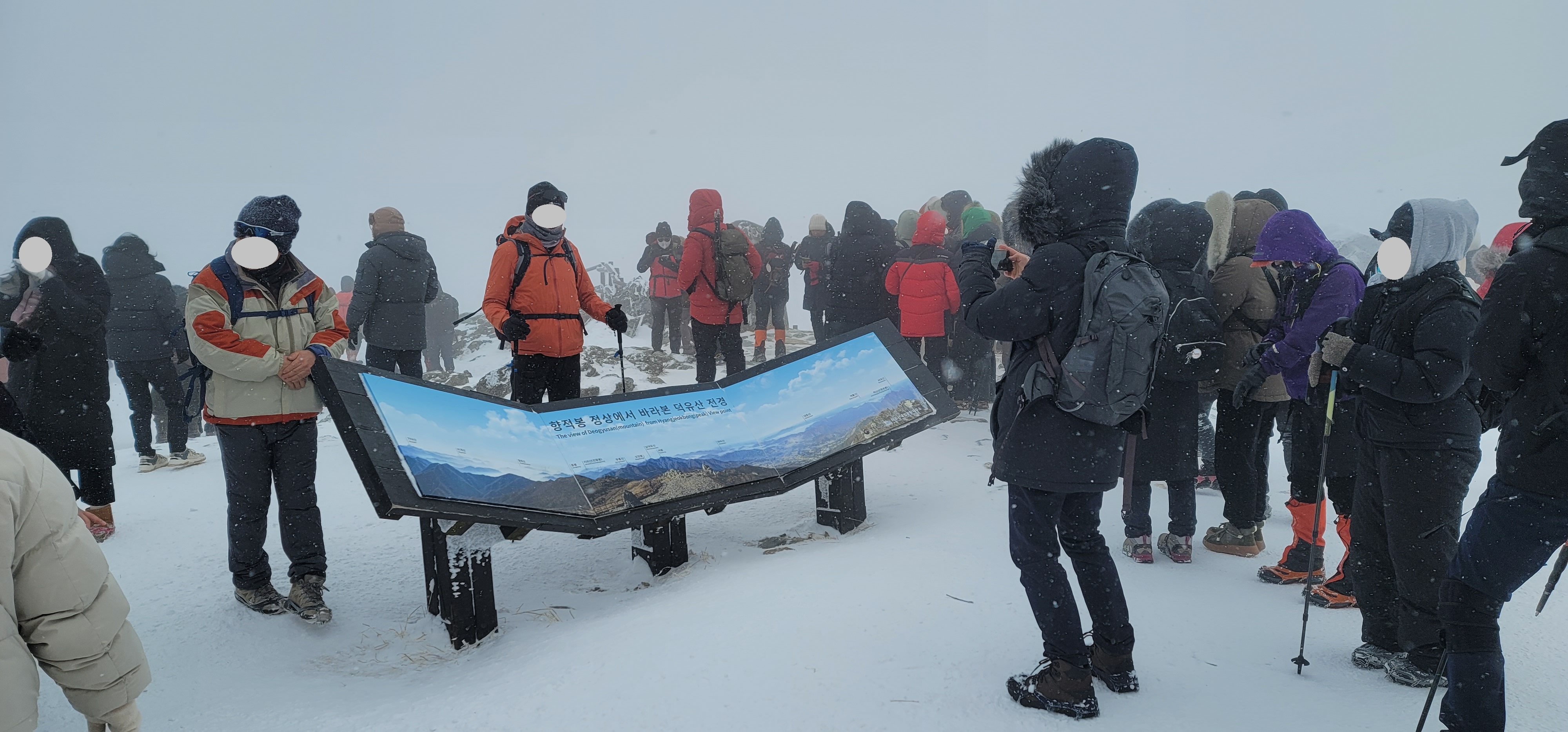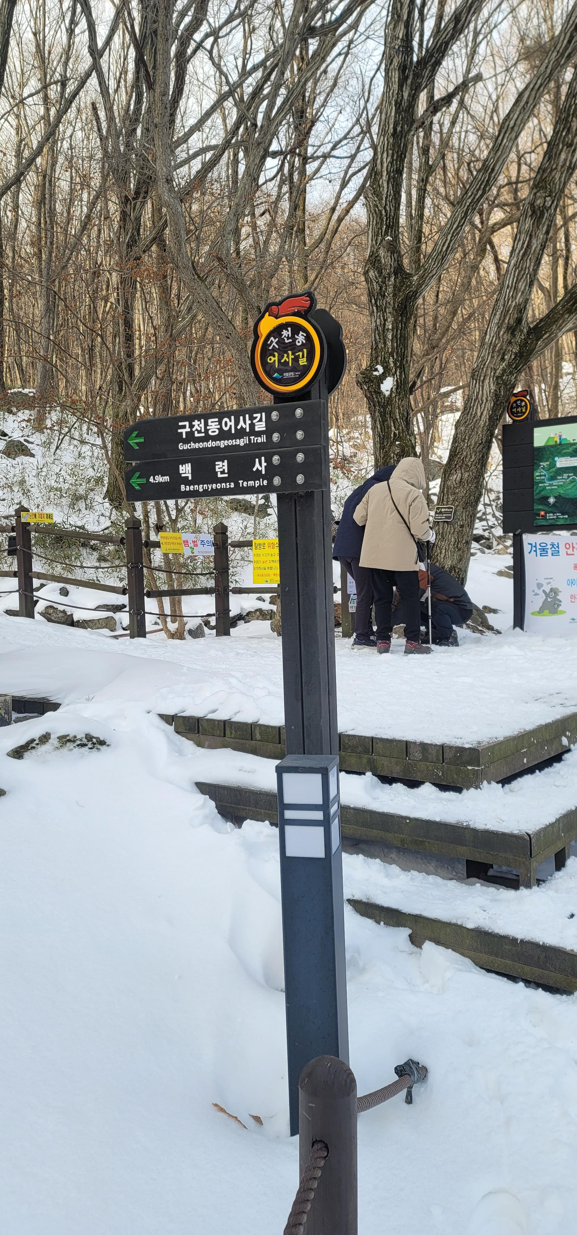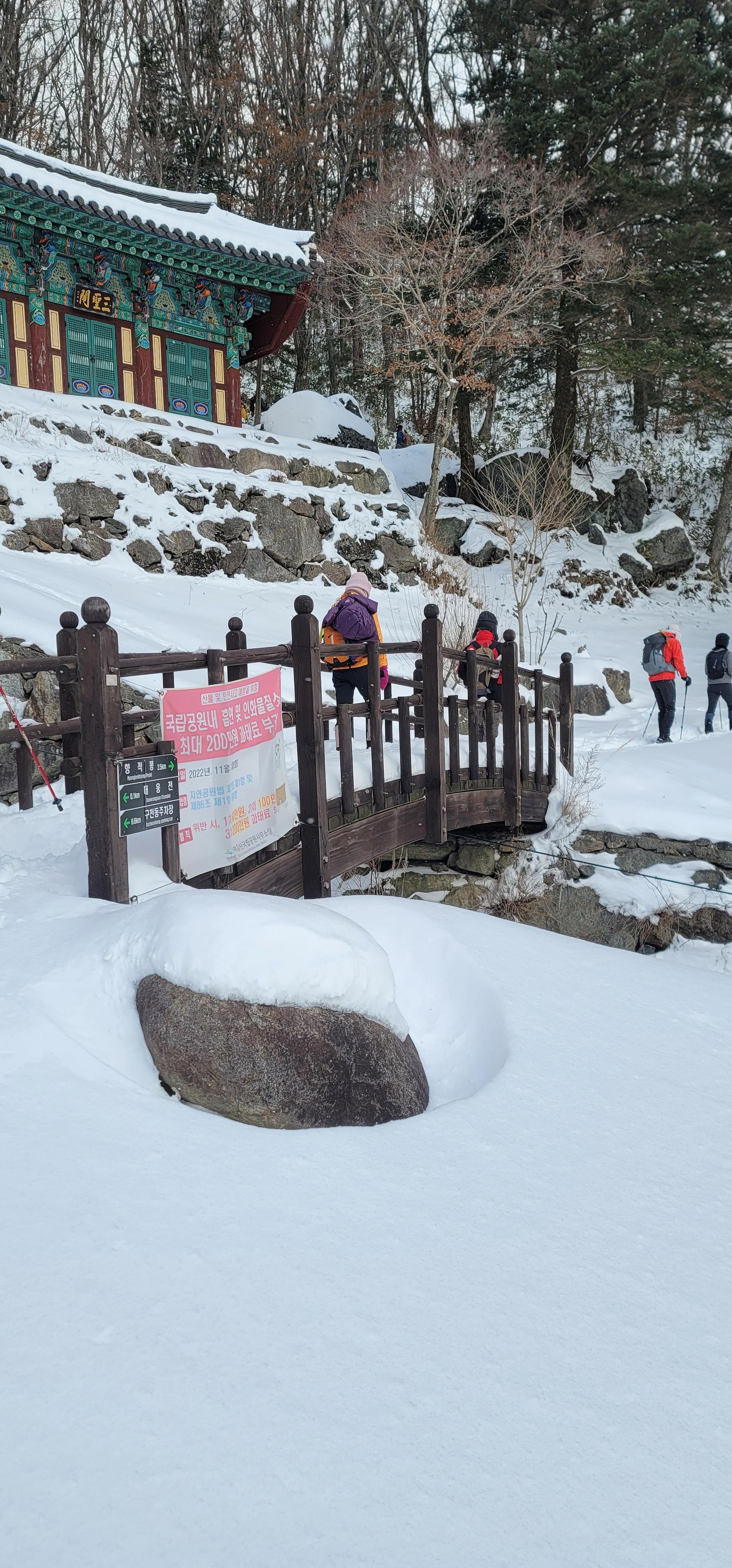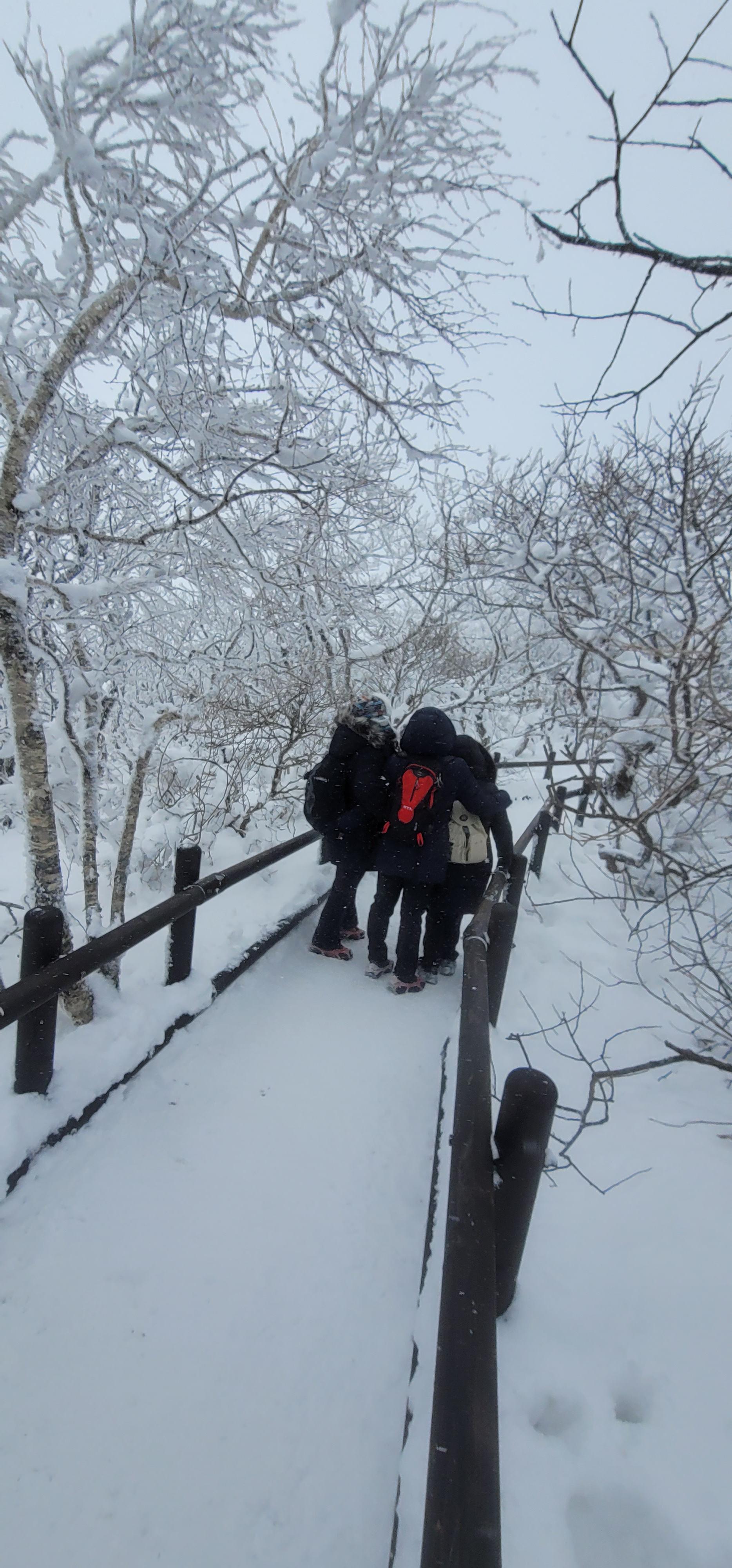 - 코스 특징 : 눈이 엄청 많이 쌓여 있어 일렬로 줄지어서 산행해야 되고, 하산하시는 분들과 마주치면 길을 비켜주다가 눈에 빠지기도 함