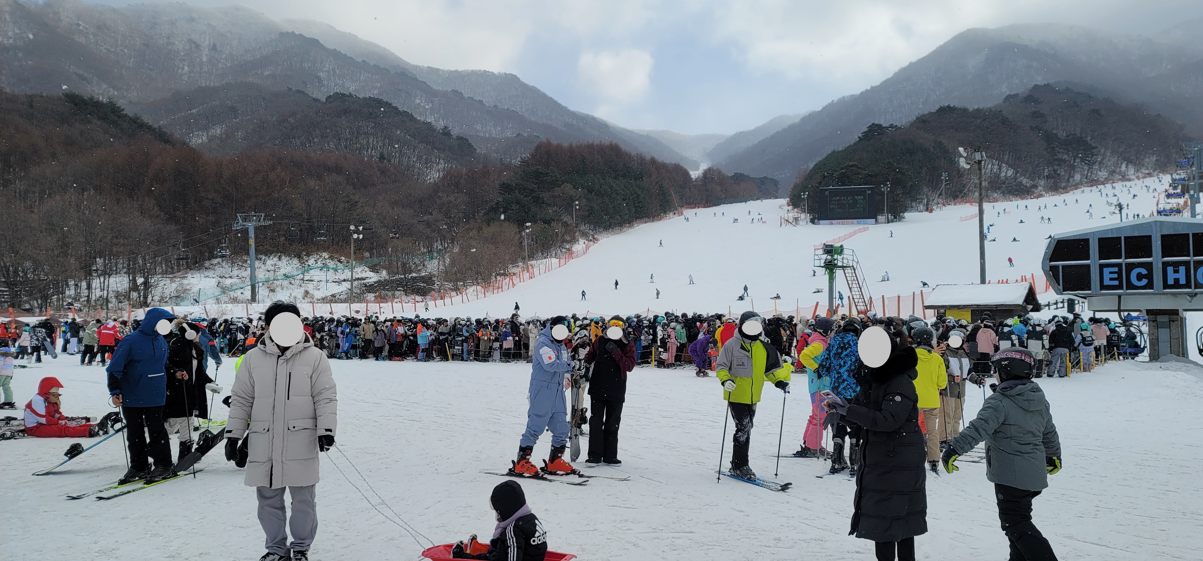 - 무주 리조트 스키장 : 조금 과장하면 내린 눈이 반이고, 눈 위에 있는 사람들이 반 정도인 상황
