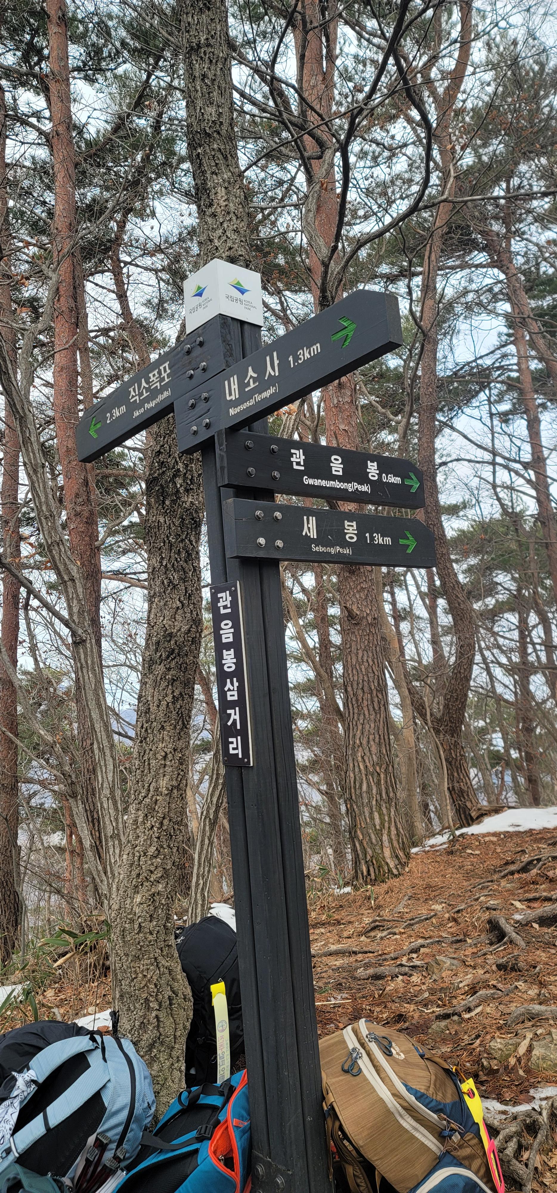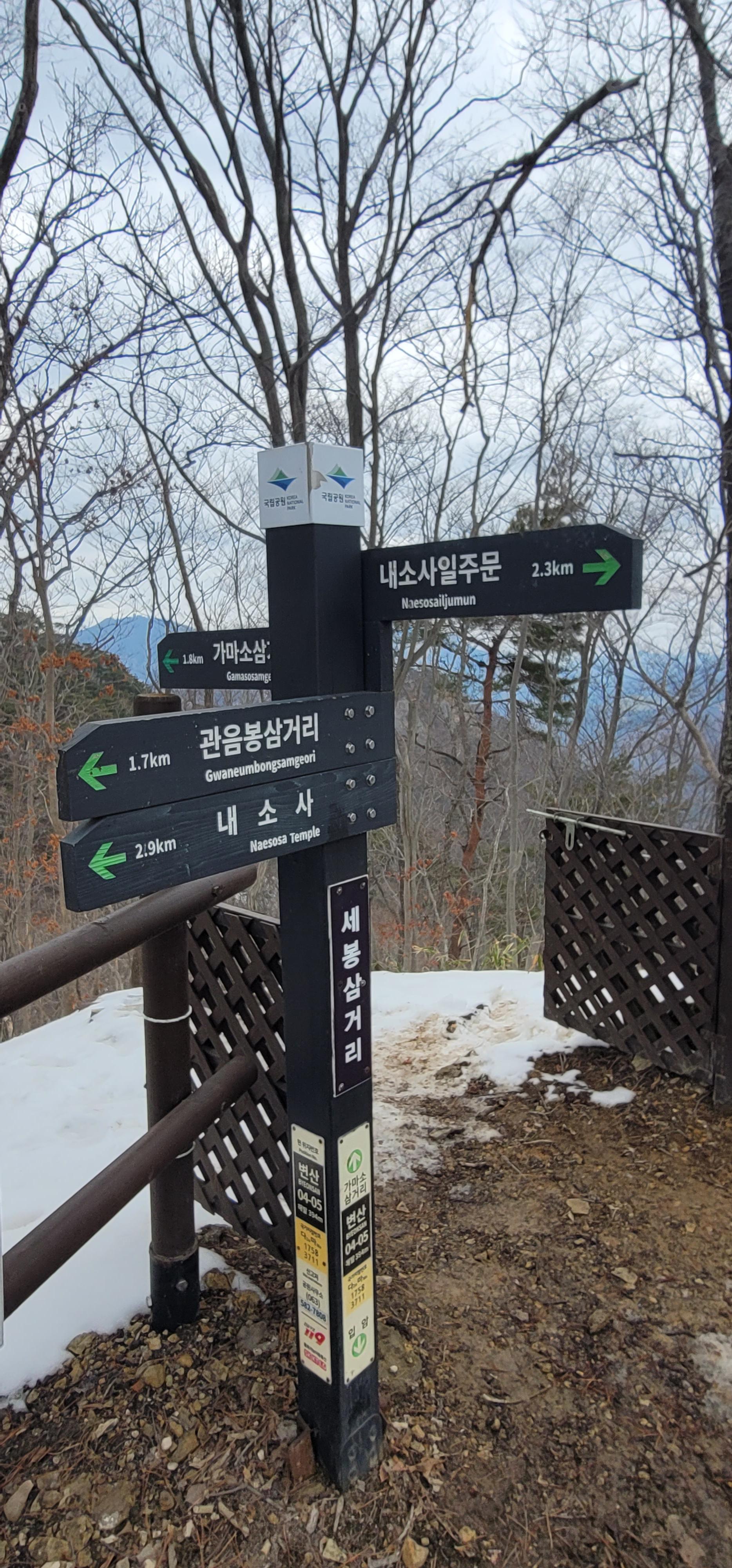 - 관음봉삼거리 → 관음봉 : 눈이 녹지 않아서 아이젠 착용 필요